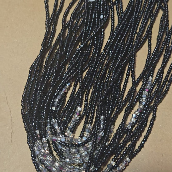 Brighten your collection with these beautiful handmade African waist beads. Featuring a Black glass bead base with Silver crystal accents, each strand is 45 inches long and tie-