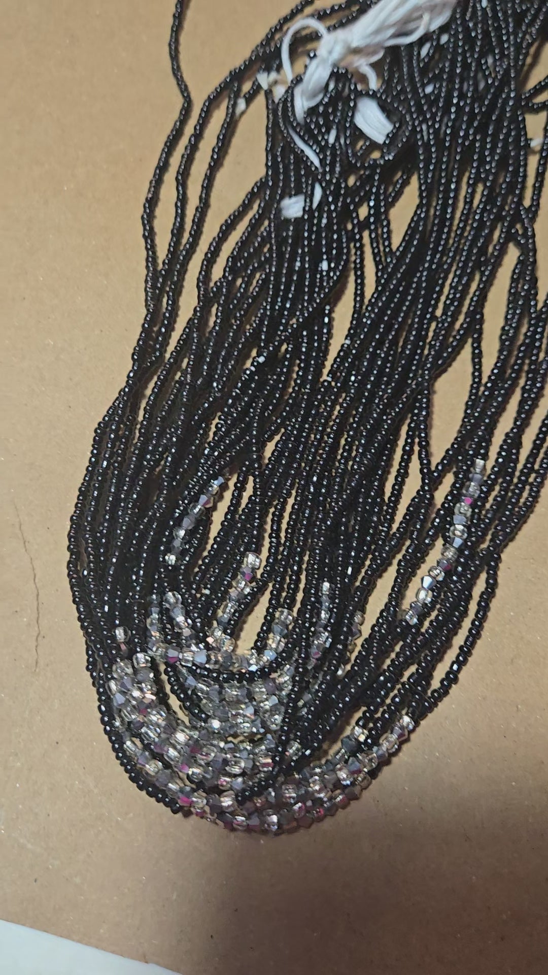 Black Waist Beads with Silver Crystals – Handmade African Tie-On