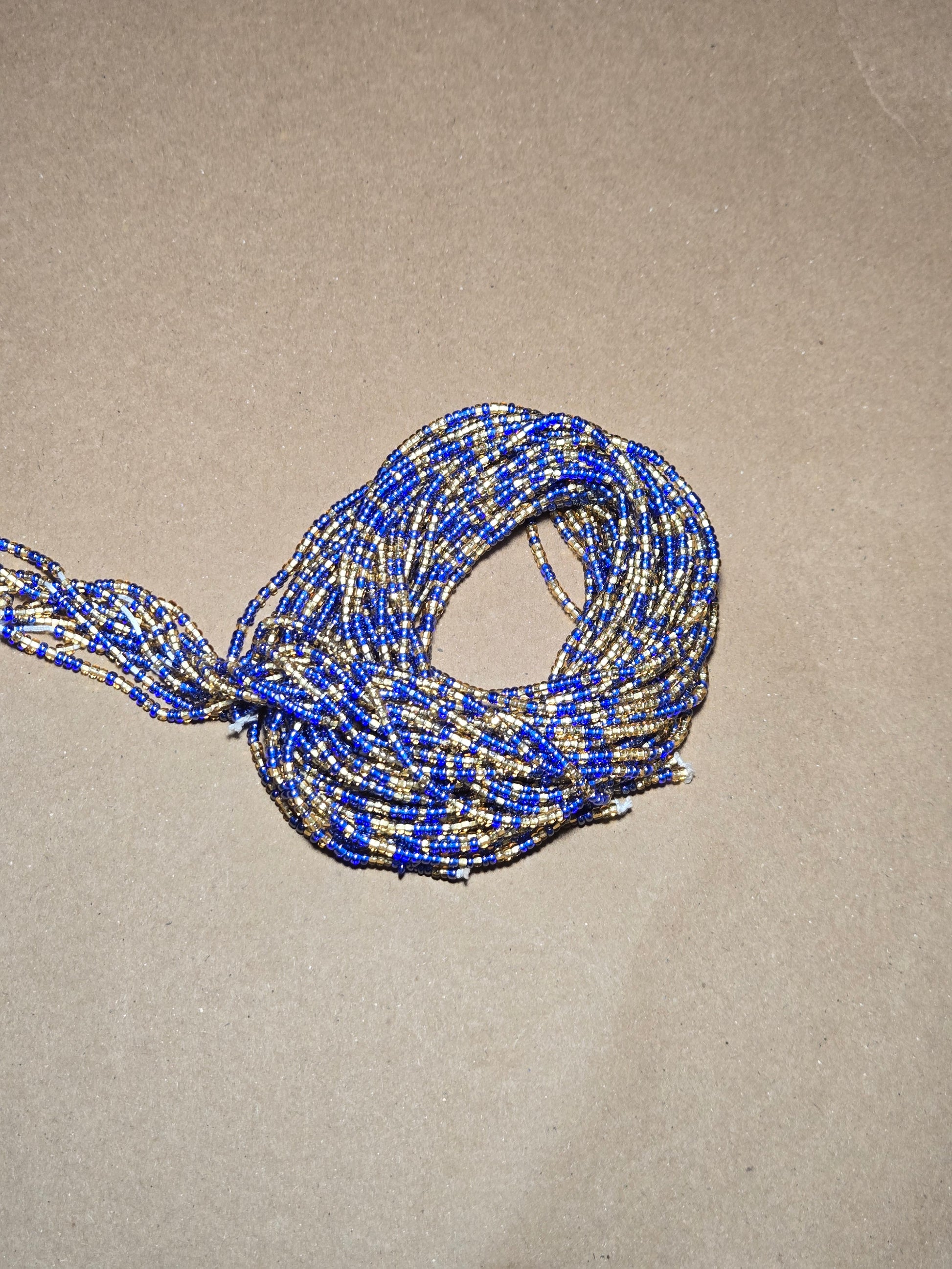 Blue and Gold Waist Beads – Handmade African Tie-On