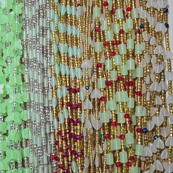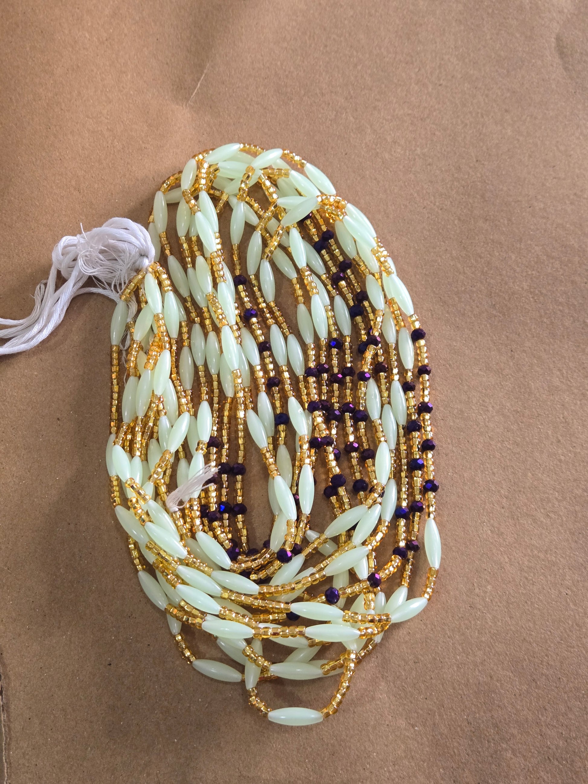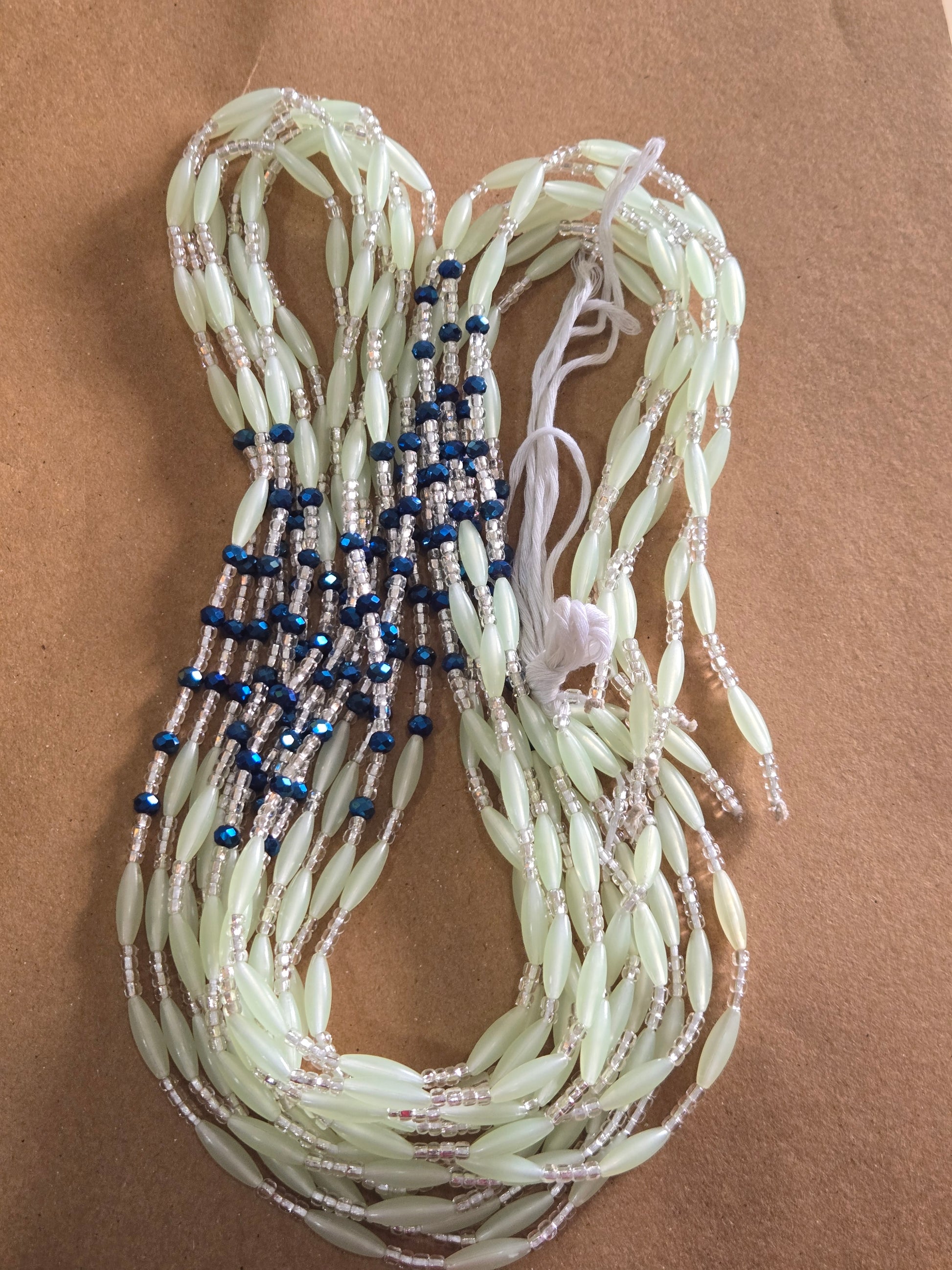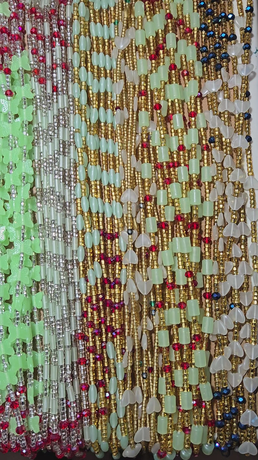 Handmade in Ghana, these glow-in-the-dark waist beads are perfect for bulk buyers, boutiques, and resellers. Each strand measures about 45 inches in traditional tie-on style, crafted with durable glass beads by skilled artisans.