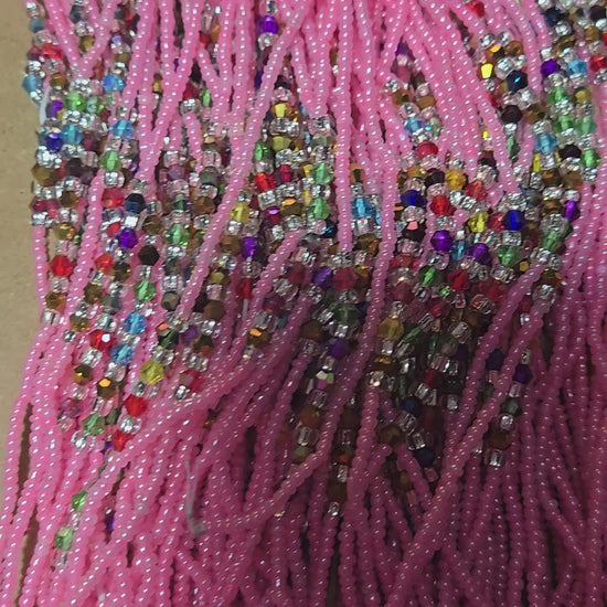 Pink Waist Beads with Multicolor Crystals – Handmade African Tie-On, 45 Inches